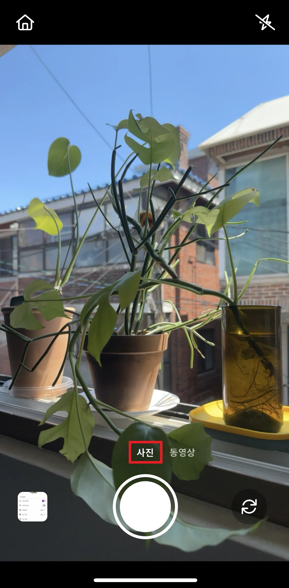 2. 사진 촬영모드에서 셔터아이콘을 눌러 사진 촬영합니다.