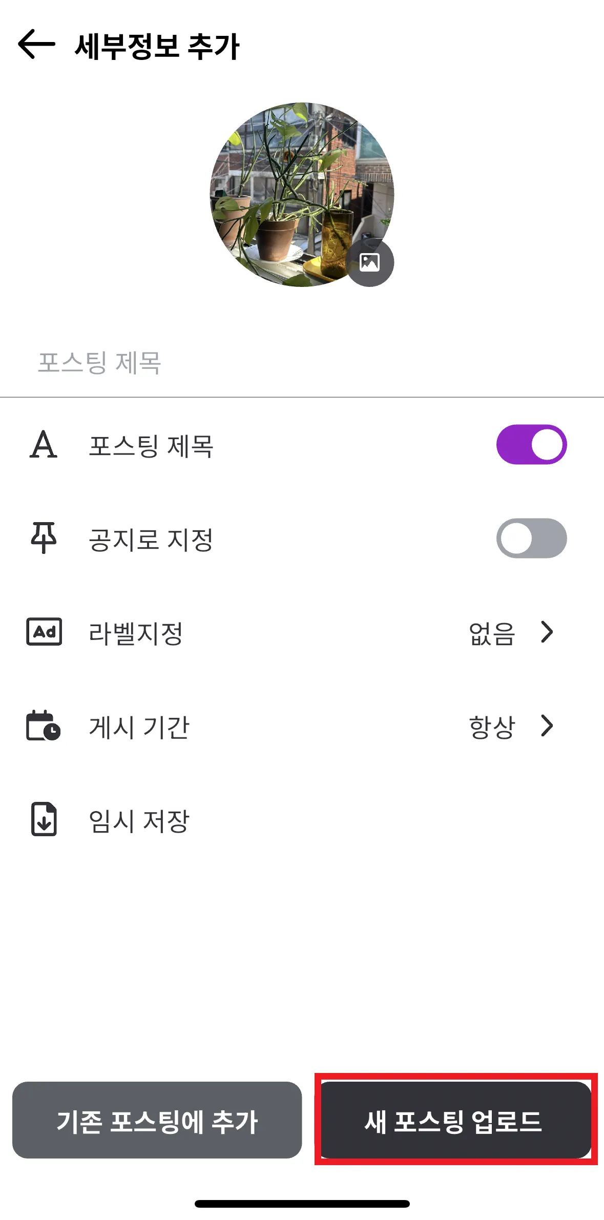 5. 촬영된 사진과 추가된 효과를 완료하여 포스팅 업로드를 진행합니다.