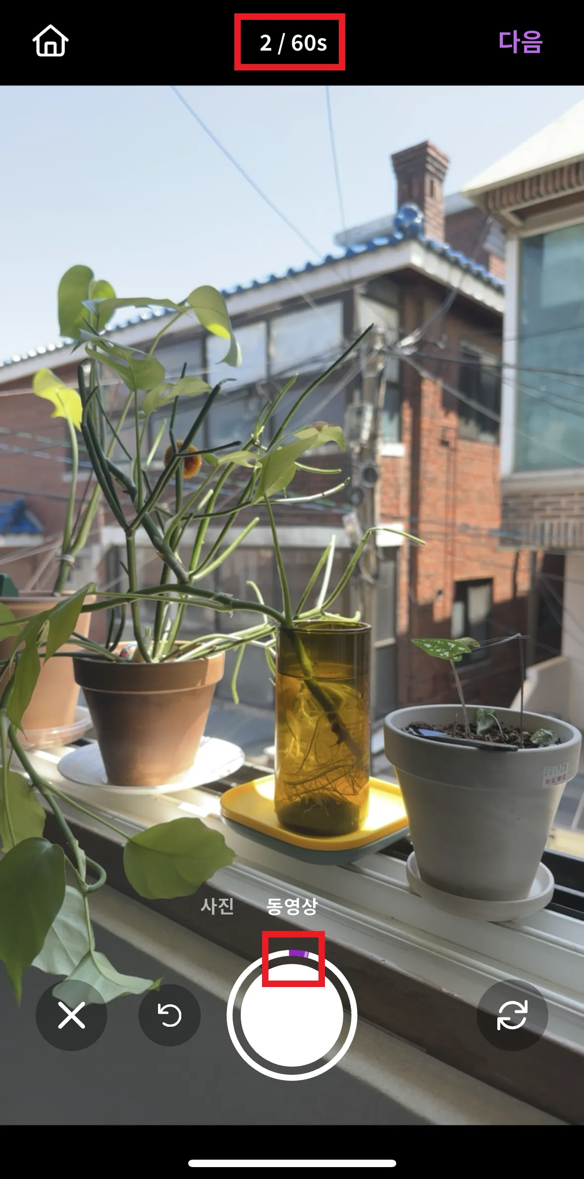 2. 동영상 촬영모드에서 셔터아이콘을 눌러 촬영합니다.