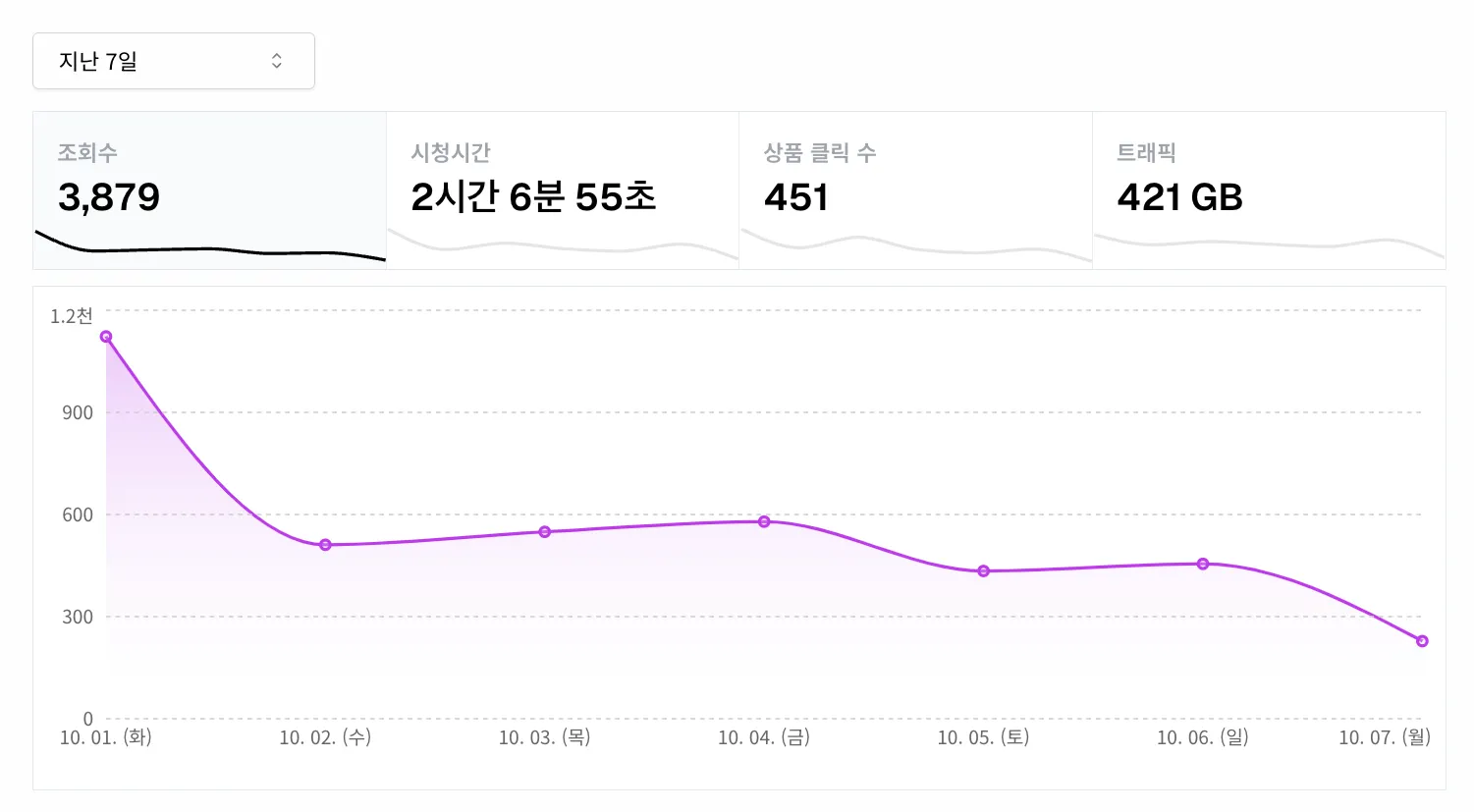 트래픽: 해당 기간 내 포스팅을 통해서 발생한 모든 트래픽의 총합을 나타냅니다. (트래픽의 경우는 전체 요약에서만 확인 가능하며 포스팅별 트래픽 데이터는 추후 제공될 예정입니다)