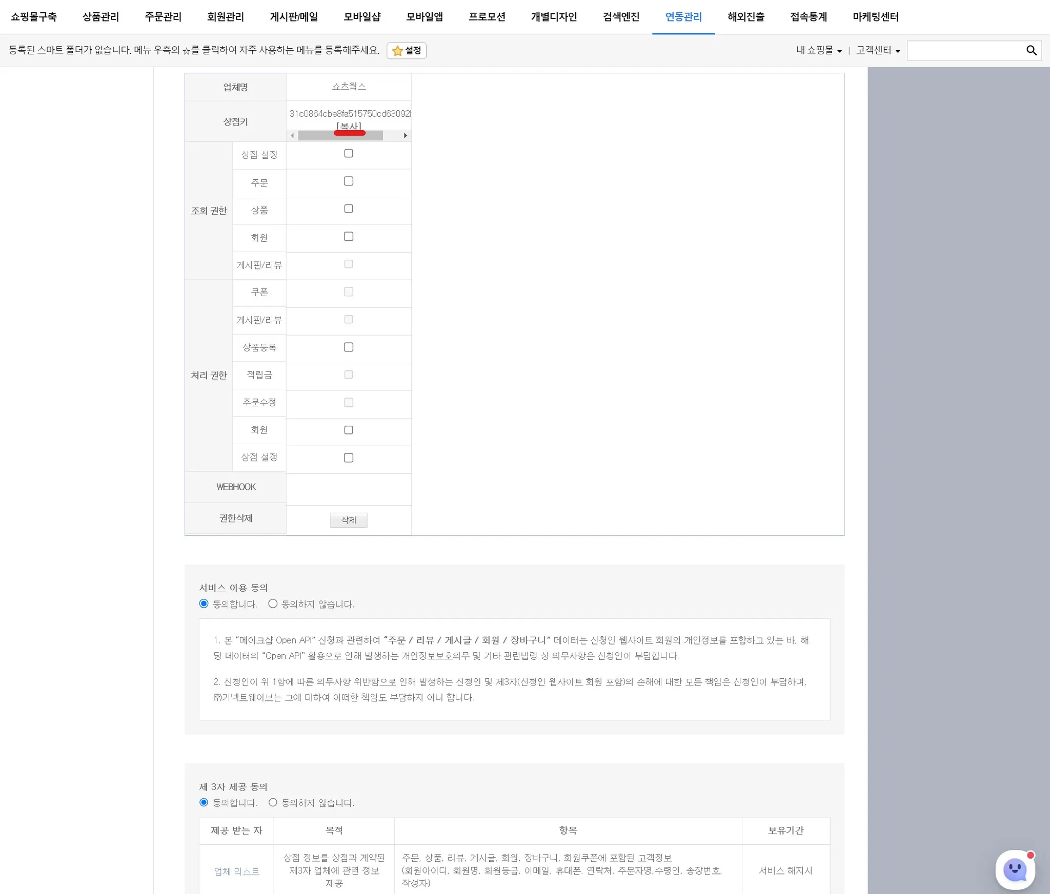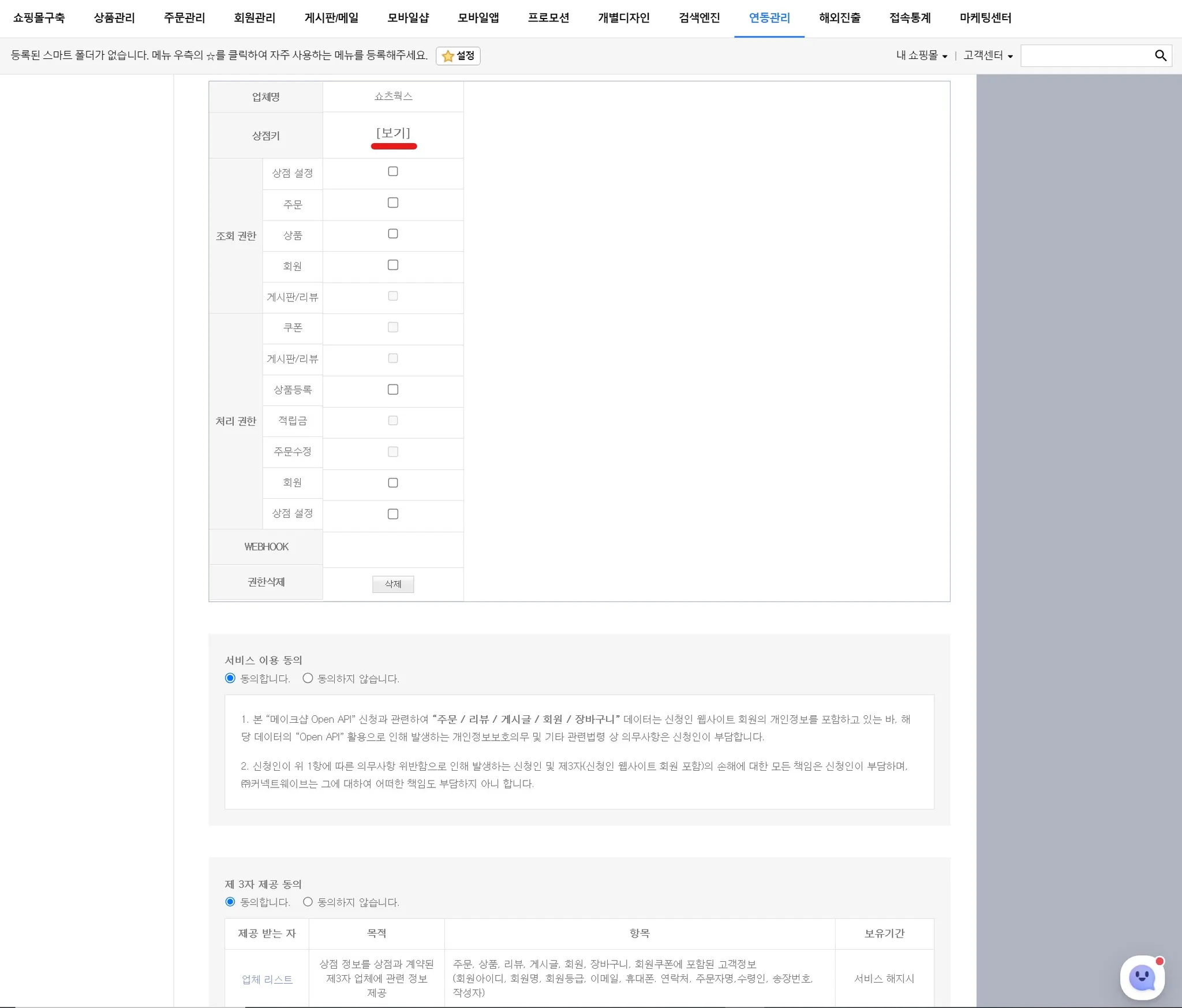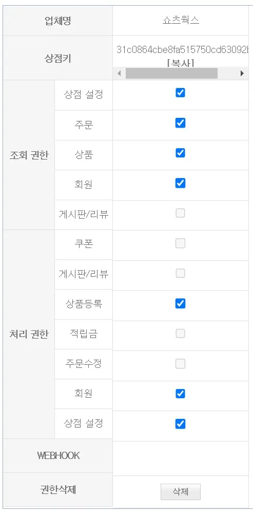 상품키는 메이크샵 관리자 페이지에서 신청, 복사 가능합니다.