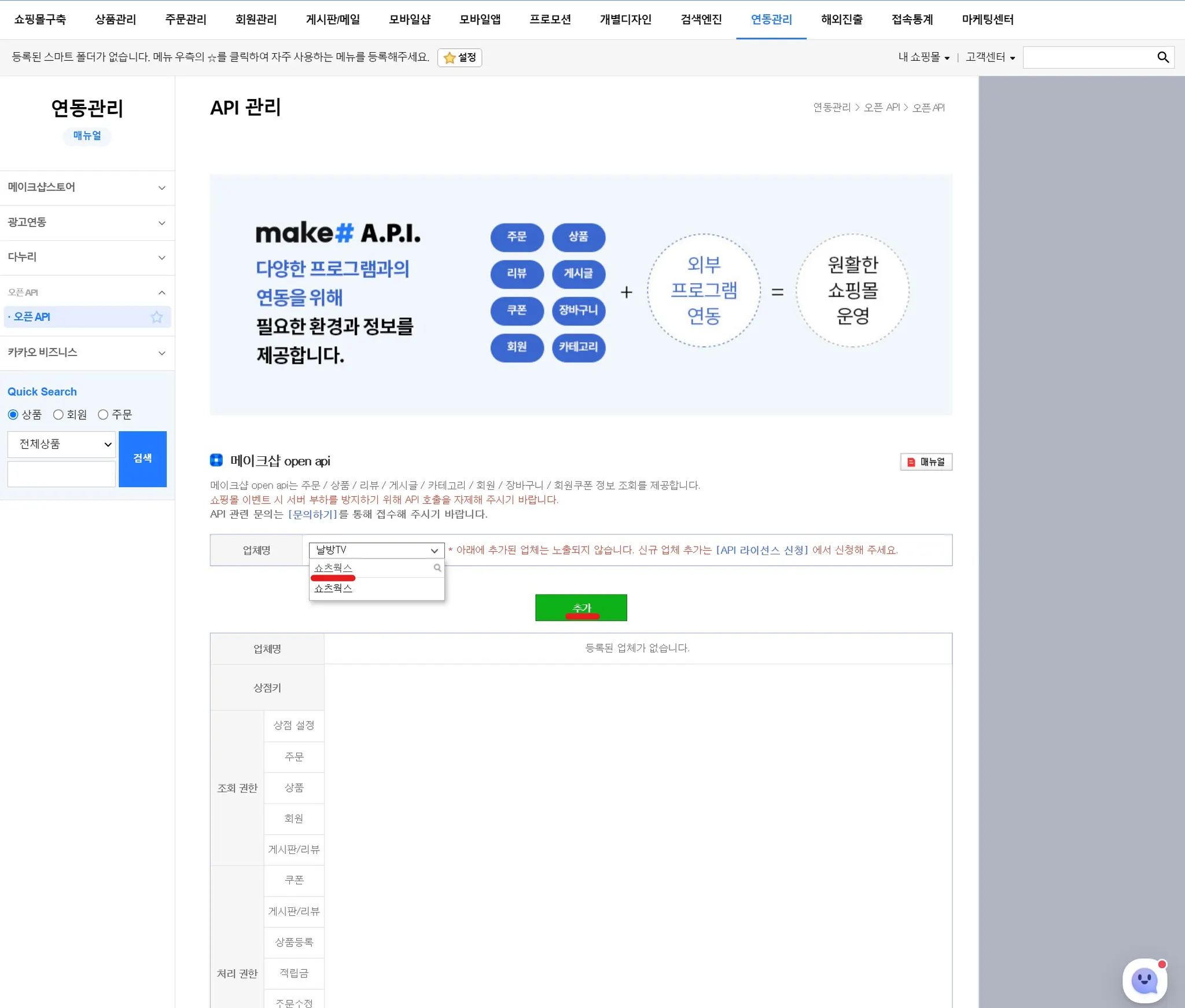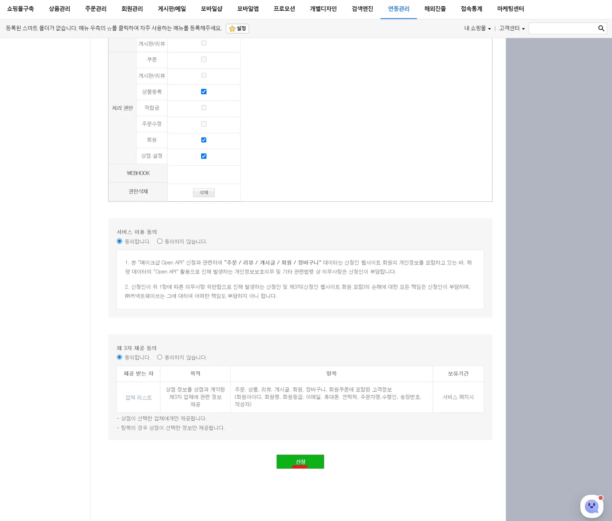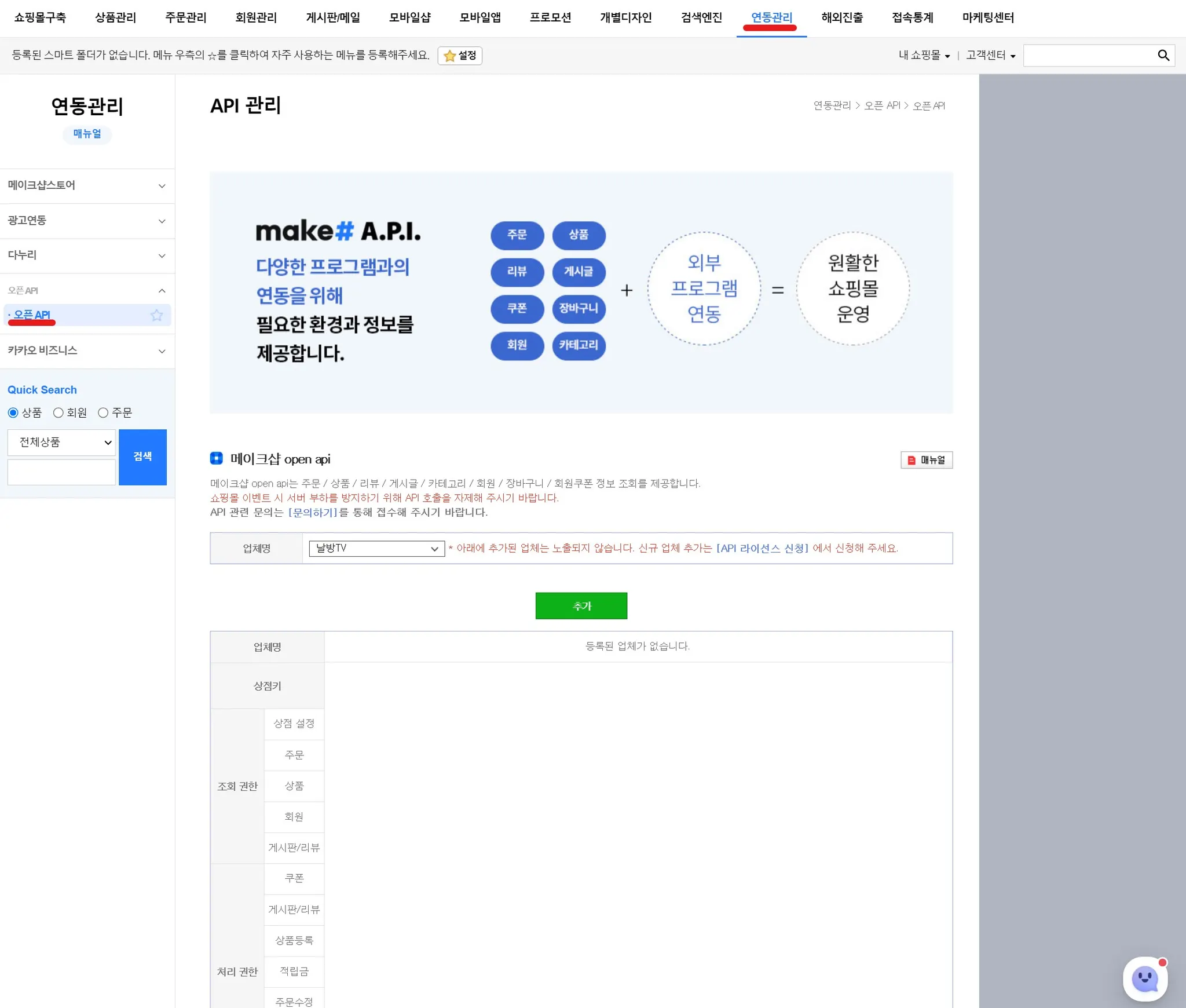 상품키는 메이크샵 관리자 페이지에서 신청, 복사 가능합니다.
