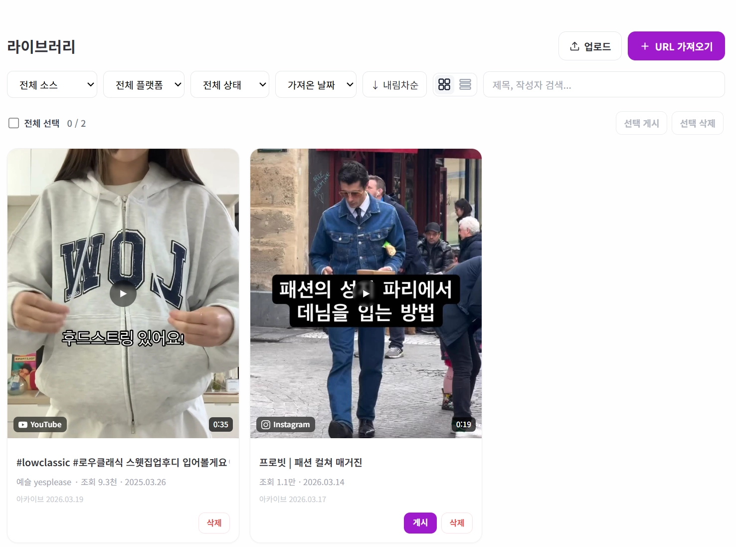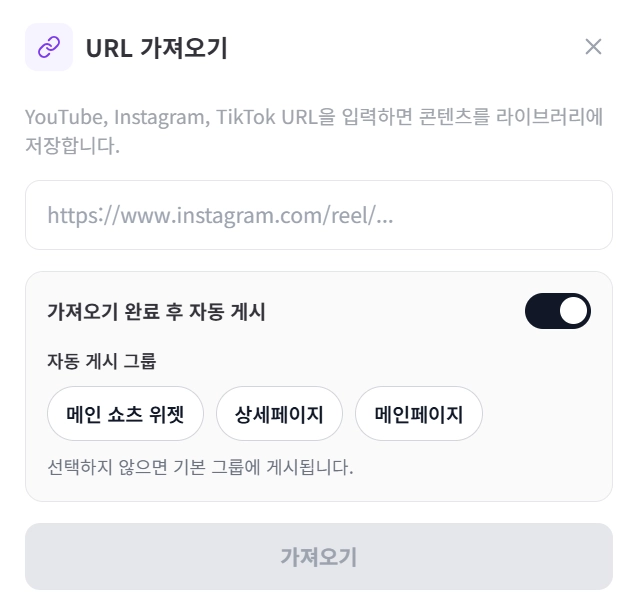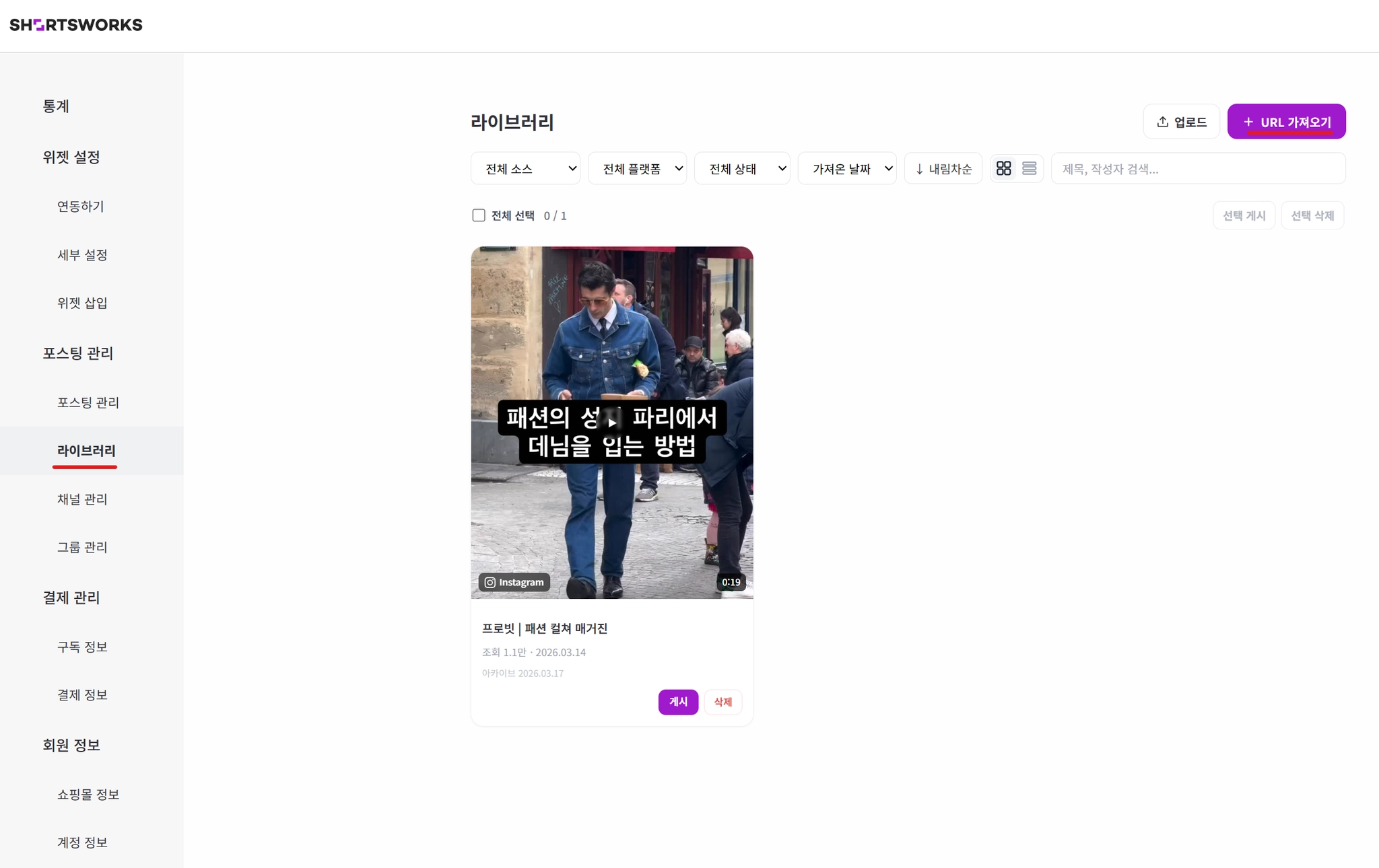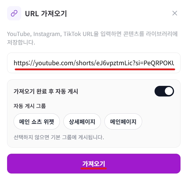 기존 SNS에 있는 영상들을 URL로 쇼츠웍스에 가져오세요.