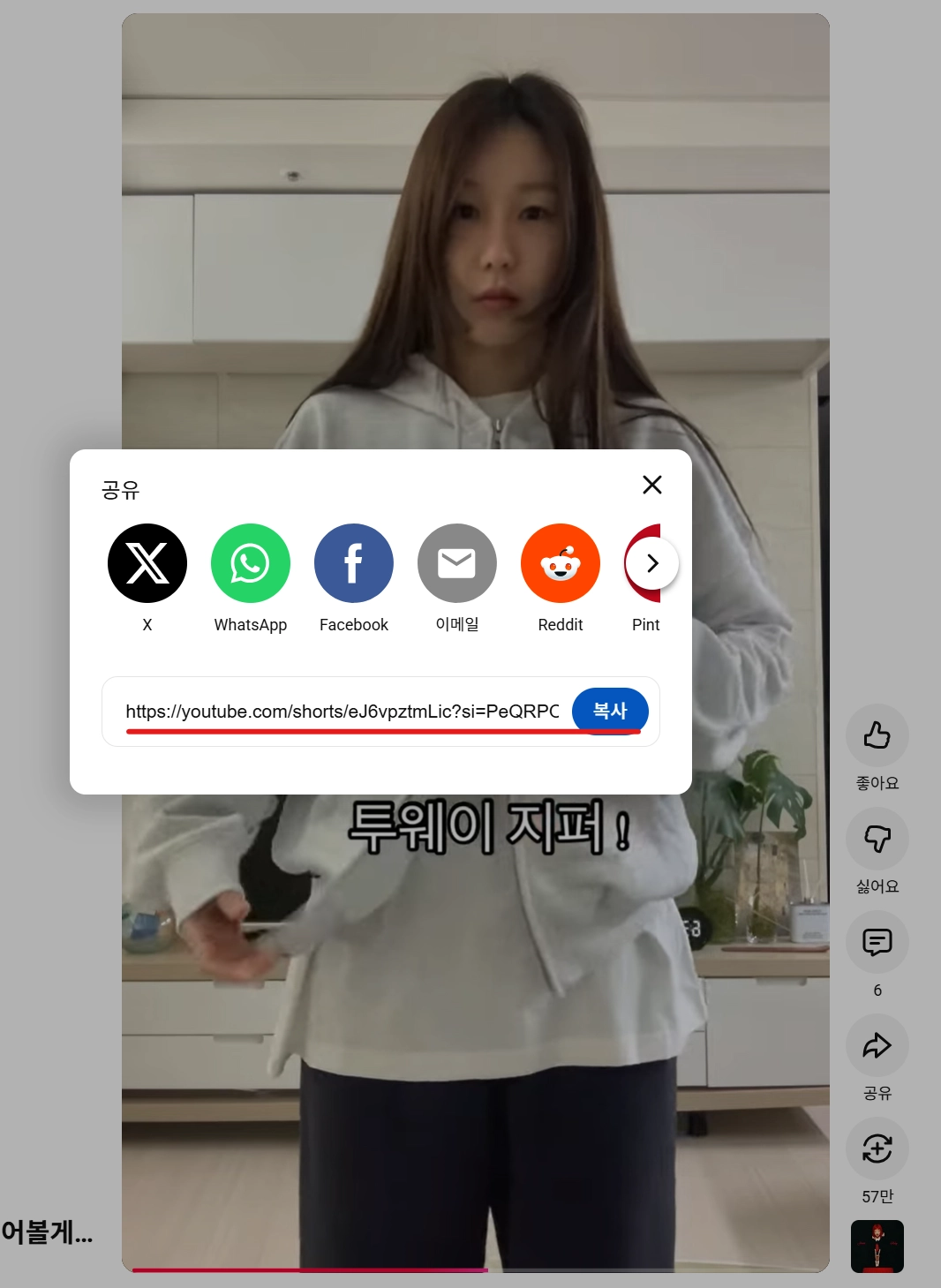 1. 쇼츠웍스에 가져올 SNS의 공유링크를 복사합니다.