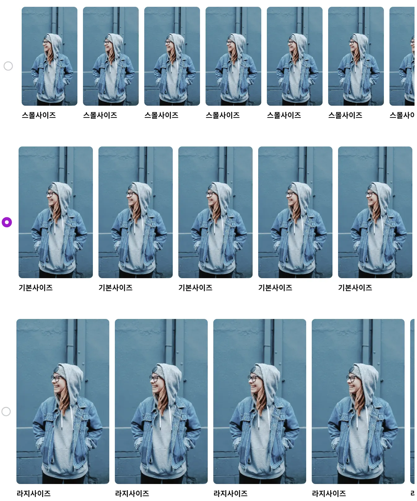 선택한 포스팅 모양의 썸네일의 크기를 선택할 수 있습니다.