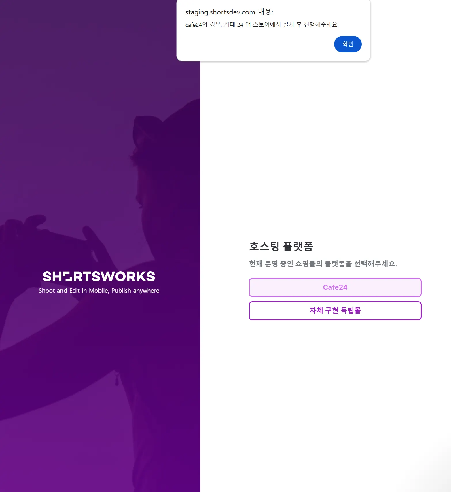 1. Cafe24를 선택하셨군요. “확인”버튼을 누르시고