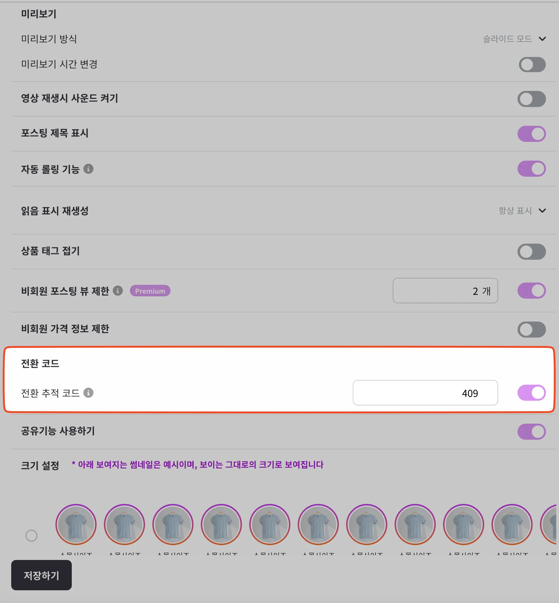 쇼츠웍스 관리자 화면의 [세부 설정] 메뉴의 전환코드 옵션을 켜두시고, 플렉스지에서 생성한 숫자로된 전환 추적 코드를 입력해주세요.