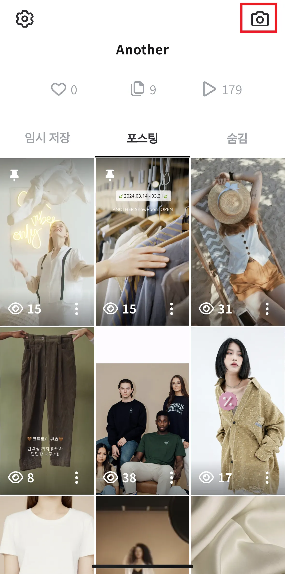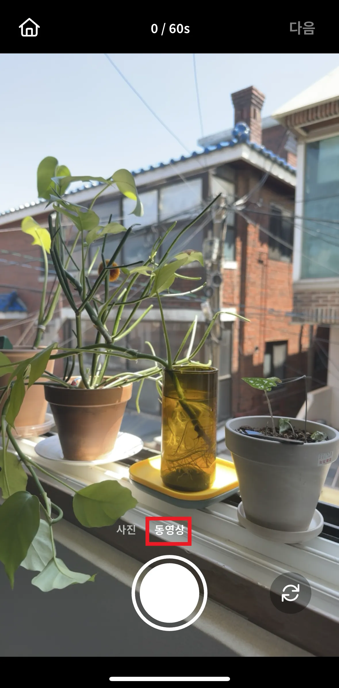 1. 상단 우측의 카메라 아이콘을 터치합니다.