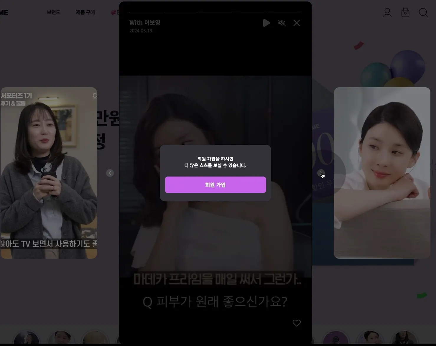 비회원에게 노출되는 포스팅을 쇼츠 단위로 제한할 수 있습니다. 쇼츠 시청 제한이 되면 회원 가입 버튼이 뜨게되며 회원으로 가입전환을 유도할 수 있습니다. 현재는 카페24 앱스토어를 통해 쇼츠웍스를 설치한 곳들로 제한됩니다. 프리미엄 기능으로 한시적으로 모든 사용자에게 무료로 제공됩니다.